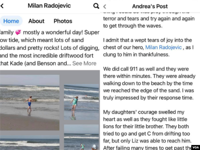 Kako kaže Milan, koji je pre godinu i po dana došao u Ameriku da vozi kamion, na plažu je došao sasvim slučajno, da malo predahne od posla. Ubrzo je čuo vrisku roditelja na obali i video dvoje dece kako se bore sa talasima. Milan je bez oklevanja potrčao u okean.