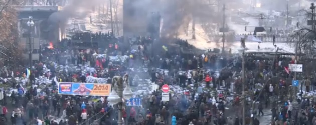 Stotine demonstranata sinoć su opkolile kulturni centar u Kijevu koji je obezbjeđivala policija. Oni su u zgradu bacali molotovljeve koktele i petarde, ali je policija rano jutros uspjela da napusti zgradu nakon što je Kličko pregovarao o njhovom bezbjednom povlačenju.
