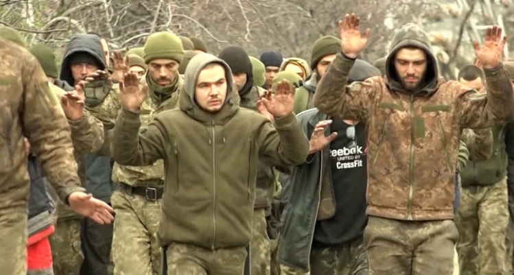 Na slikama ruske televizije prikazani su ukrajinski vojnici kako se kreću ulicom s sa podignutim rukama. Jedan od vojnika je prikazan kako drži ukrajinski pasoš.