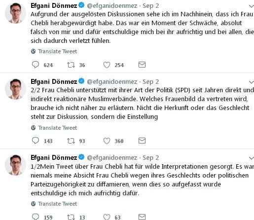 Denmez se kasnije izvinio, istakavši da je reagovao u trenutku slabosti i da mu nije bila namjera da povrijedi gospođu Chebli.