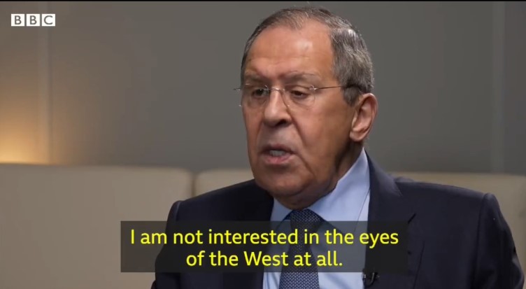 Kada je novinar Stiven Rozenberg, koji je razgovarao sa šefom ruske diplomatije, istakao da je u očima Zapada Rusija odgovorna za sudbinu zarobljenih stranaca, Lavrov ga je prekinuo i odgovorio: