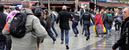 Белгијски медији јављају да су најмање двојица нападача, од којих је један имао око 40 година, око 12:30 бацили неколико шок бомби, а са мјеста напада чуле су се четири одвојене експлозије и пуцњава.