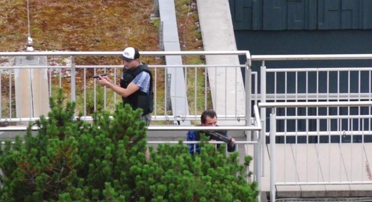 On kaže da je policija pucala u napadača i ranila ga, ali je on uspio