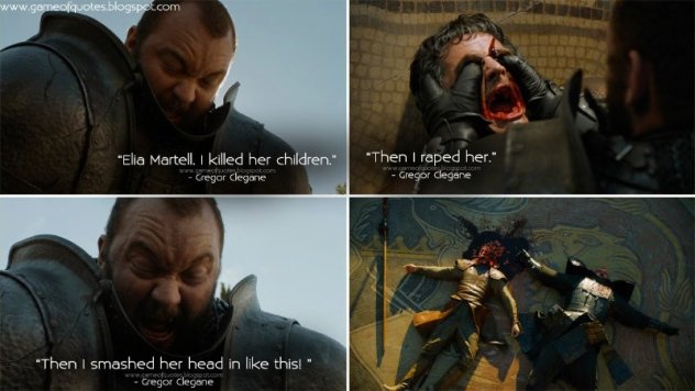 “Elia Martell. Ubio sam joj djecu, zatim sam je silovao…onda sam joj ovako razbio glavu.” Gregor Clegane