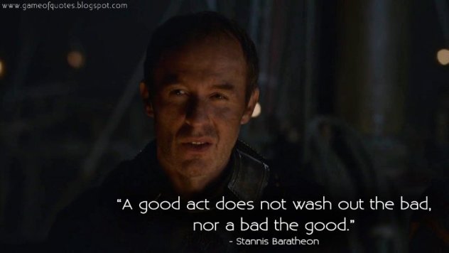 “Bio si junak, a i krijumčar. Dobra djela ne peru ona loša. Niti loša ona dobra.” Stanis Baretheon govori Ser Davos Seaworth-u