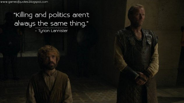 “Ubijanje i politika nisu uvijek ista stvar. Kada sam služio kao desna ruka kralju, sasvim sam to dobro obavljao, s obzirom da je kralj više volio mučenje životinja nego da vodi svoj narod. Smatram da sam mogao i bolje“, Tywin Lannister govori Daenerys Targaryen