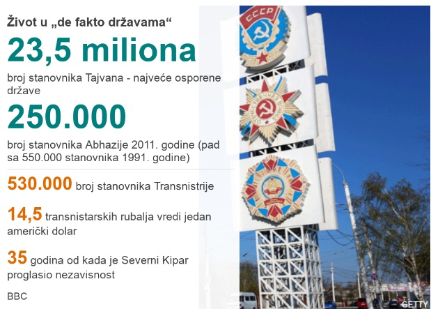 Abhazija, Transdnjestar (poznat i kao Transdnjestrija i Transnistrija) i sjeverni Kipar negdje su na sredini. Sve tri nastale su u ratnim sukobima koji su ostali nerazriješeni.