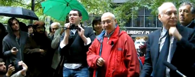 У кратком говору који су реченицу по реченицу понављали сви окупљени овај професор са Универзитета Колумбија је изјавио да се Вал Стрит обогатио тако што је „социјализовао губитке а приватизовао добитке“ а за ову шему је рекао да „то није капитализам“. Изненађен што окупљени понављају његове ријечи а након што му речено да је то због забране кориштења мегафона, професор Штиглиц је додао да је то примјер превише закона који ограничавају демонстрације а недовољно закона да се спријечи тренутно понашање Волстрита.