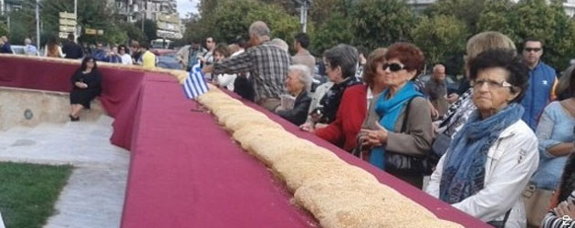 Koulouri je uobičajena "grickalica" koja se prodaje na grčkim ulicama, a jučerašnji je razdjeljen prolaznicima.