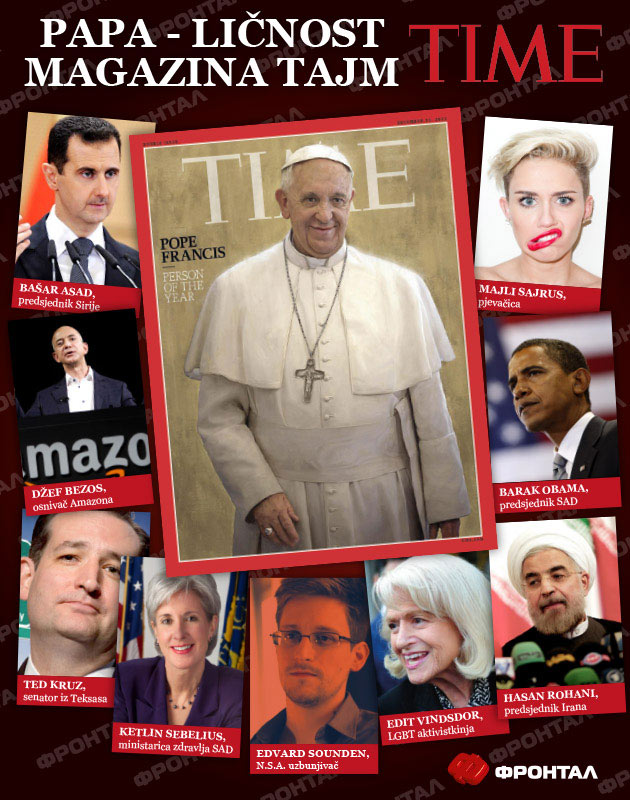 Tajm u svom objašnjenju izbora za ličnost godine navodi da je papa uzeo ime skromnog sveca, a zatim je pozvao na ozdravljenje crkve. "Prvi neevropski papa u 1200 godina, spreman je na transformaciju crkve koja se ne mijenja stoljećima", piše Time.