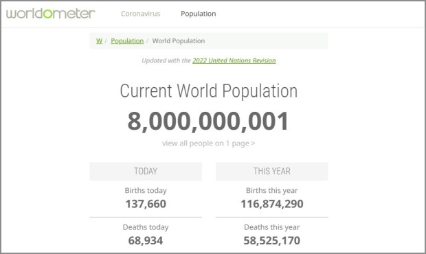 Sajt Worldometer, koji se oslanja na podatke institucija, ali i projekcije, prati porast broja stanovnika na planeti i u devet časova je pokazao da se rodio i osmomilijarditi čovjek. U isto vrijeme i Populacioni fond UN je na Tviter profilu objavio da nas sada ima osam milijardi.