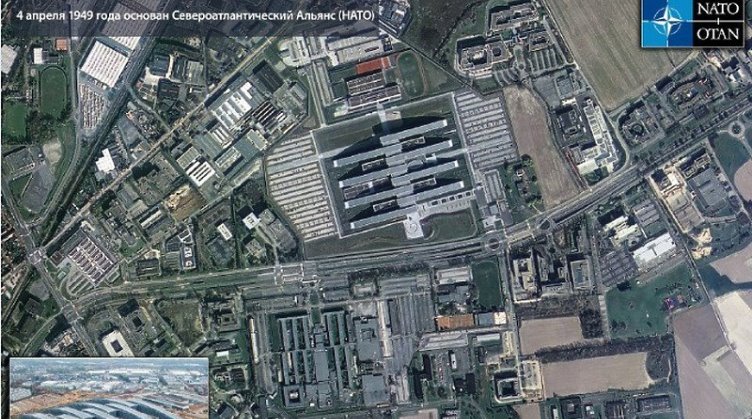 On je uz objavu podijelio i satelitski snimak NATO-a u Briselu, koju je napravio ruski satelit Resurs-P, navodi RIA Novosti.