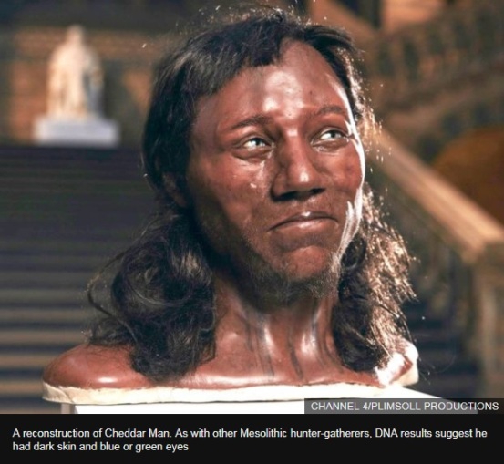 Cheddar Man je bio predmet rekonstrukcije u Prirodnjačkom muzeju u Londonu. DNK sugeriše da je, kao i većina drugih evropskih lovaca-sakupljača tog vremena, imao tamnu kožu u kombinaciji sa plavim očima.