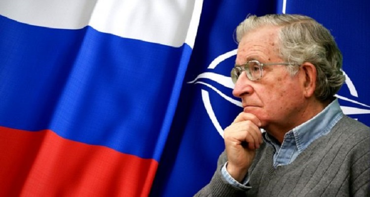 „Rusija je pre 30 godina — mnogo pre Putina — jasno stavila do znanja da bi ulazak Ukrajine u NATO, neprijateljski vojni savez, značio prelazak linije na koju nijedan ruski lider ne bi pristao. Ni Gorbačov, ni Jeljcin, ni Putin. Neki visoki američki zvaničnici su to razumeli: Džordž Kenan, Henri Kisindžer, Džejk Madlok i šef CIA Vilijam Berns. Ovo shvatanje postoji već dugo vremena. Od 1990-ih pokušavaju da upozore američke zvaničnike da bi pokušaj uključivanja Ukrajine u NATO bio nepromišljen i provokativan“, rekao je Čomski.