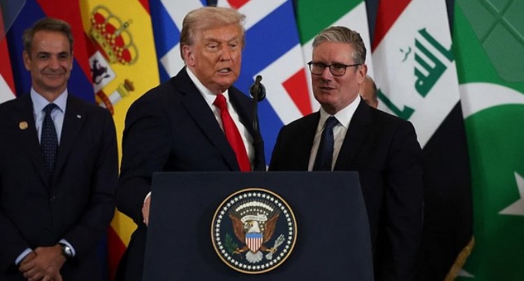 Na samom početku konferencije, Tramp je postavio pitanje: „Gdje je Ujedinjeno Kraljevstvo?“ Kada je britanski premijer Kir Starmer podigao ruku, Tramp ga je pozvao da mu se pridruži na bini. Rukovali su se kratko, Tramp ga je nazvao „prijateljem“, ali mu nije omogućio da se obrati prisutnima. Umjesto toga, nastavio je govoriti o svojoj ulozi u donošenju mira na Bliski istok.