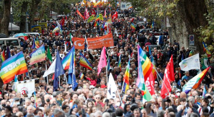 "Ne ratu. Ne slanju oružja", moglo se pročitati na velikom transparentu koji su nosili demonstranti – oko 30.000 njih po procjeni policije, prenose italijanski mediji – uzvikujući: "Dajte šansu miru!".