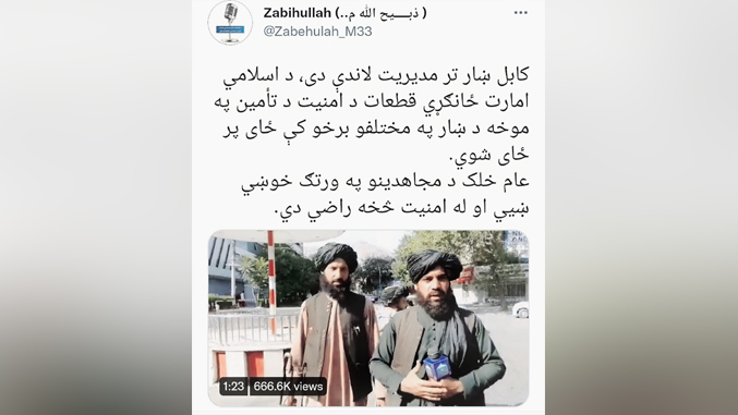 Твитер налог портпарола талибана Забиулаха Муџахида