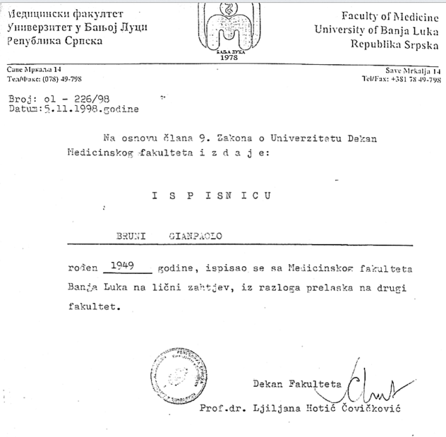 „I da vam ništa drugo nije sumnjivo, bila bi sumnjiva upravo ta godina kada su Italijani, navodno, počeli da studiraju. Pa, kako povjerovati da bi baš iz Italije neko došao da studira u Banjaluku samo godinu dana od završetka krvavog rata?“, kaže za Inforadar.ba jedan od profesora sa banjalučke medicine.