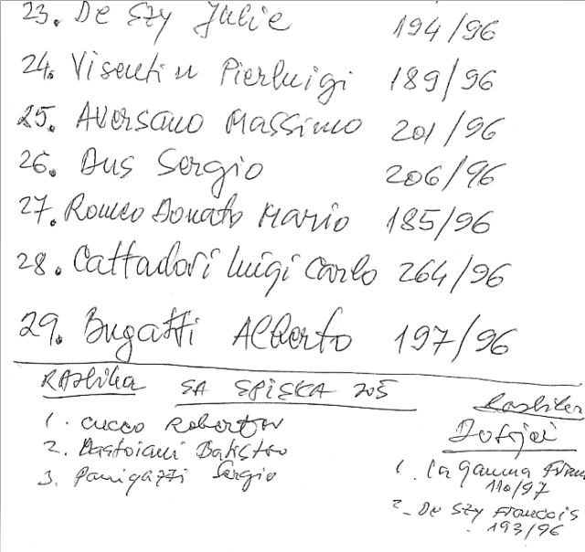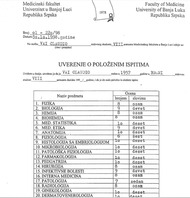 Osim činjenice da su neki od „studenata“ tada bili prilično vremešni, a pojedini bliže penziji nego cvijetu mladosti pa je, recimo, Rosa Cossu iz Sasarija, 1996. imala 36 godina, a njen kolega, Đan Paolo Bruni iz Firence čak 47, posebno su indikativna uvjerenja o položenim ispitima do kojih je Inforadar.ba takođe došao.