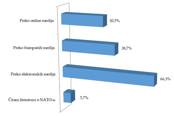 Trećina ispitanika (30,5%) svoje znanje bazira na informacijama koje dobiju putem online medija, dok 5,7% ispitanika čita stručnu literature o NATO savezu.