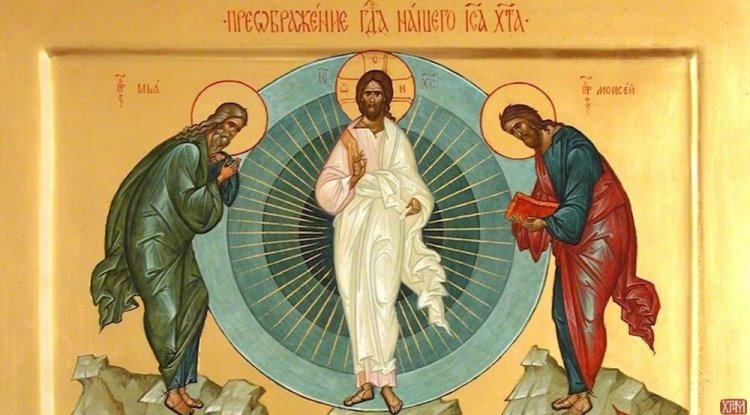 Док се молио, његово лице се измијени и засија као сунце, а одјећа постаде сјајна и бела као снијег, каже Библија. Тако се он преобрази пред њима, чиме се први пут божанска природа Исусова учинила видљивом.