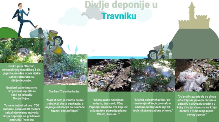 “Ovo vam je ovde gdje se mi sad nalazimo jedna od najvećih deponija u gradu Travniku. Ovo je gradska zona. A da ne govorim gdje su seoske zone, gdje su mjesne zajednice kakvo je tamo stanje i kako to izgleda. Naročito u šumskim kompleksima. Krenite od Travnika prema Vlašiću, prema Babanovcu, od Gostilja prema Dobratićima, pa dalje od Ugra gore prema Gornjim Korićanima, uz rijeku Bilu, uz rijeku Rogačić, uz rijeku Jasenicu… Nema mjesta, naročito onaj jedan dio oko rijeke Bile prema selu Dub, Suhi Do, područje prema Skomorju odmah iza Mehurića, iza prvih tunela to su ogromne deponije smeća koje bi trebalo sanirati.”