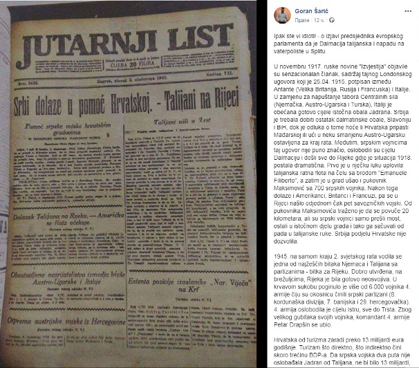 Ipak ste vi idioti! – o izjavi predsjednika evropskog parlamenta da je Dalmacija talijanska i napadu na vaterpoliste u Splitu