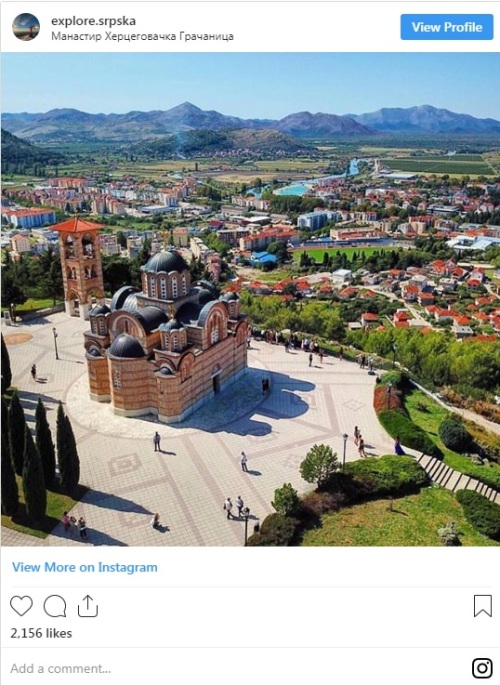 Hercegovačka Gračanica se nalazi na brdu Crkvina, a ukoliko nekoga ne zanima sakralni objekat, neće se pokajati da dođe do njega jer se odatle pruža prelijep panoramski pogled ka gradu.
