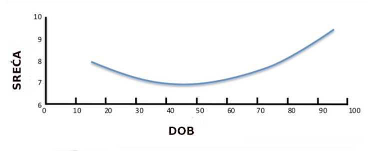 Blagodat dugog života stečena razvojem civilizacije, tehnologije i nauke nije neki besmisleni luksuz. Ljudi su, među ostalim, ljudi i po tome što su uspjeli produžiti život nakon što je on ispunio esencijalnu biološku funkciju razmnožavanja i podizanja potomstva. Štaviše, brojna istraživanja pokazuju da krivulja sreće, nakon što je počela padati u mladosti, opet raste od pedesetih godina na dalje (grafikon dole).