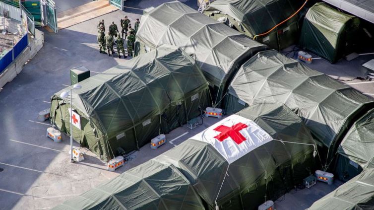 Vojno osoblje pripremilo je terensku bolnicu na području bolnice Ostra Sjukhuset u Geteborgu. Terenska bolnica ima 20 odjeljenja intenzivne njege.