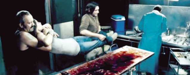 Хладни професионализам оба “јунака” види се када одводе Керол у операциону салу, у којој се на столу већ налази искасапљен леш. Зоран га, једноставно, баца са крвавог стола, а на његово мјесто ставља и везује Керол. Када остане сама са доктором који јој прво вади очи, она успева да извуче крваву руку из кожних стега, и убија га, наравно скалпелом.