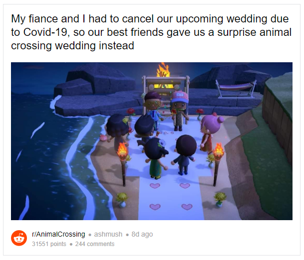 putem igre "Animal Crossing: New Horizons", nakon što je prava ceremonija