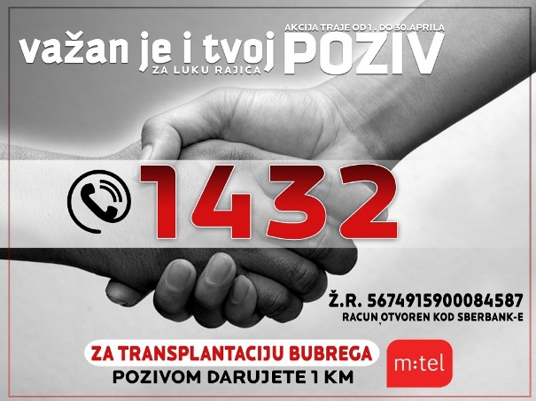 Luka je dobio i kratki humanitarni broj u Mtel-u 1432 preko Udruženja građana Aurora iz Sokoca.