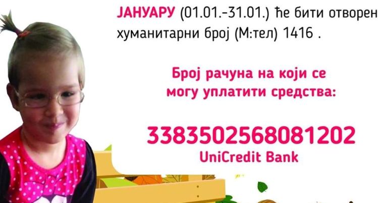 Kako bi se što prije sakupio novac za operaciju, tokom januara biće otvoren M:tel humanitarni broj 1416, a za uplate je na raspolaganju račun u UniCredit banci, 3383502568081202.