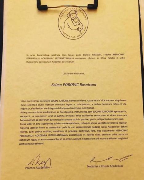 Svjetski kongres perinatalne medicine (WCPM) ove godine se održava u Rumuniji. Osim Selme Porović, novi članovi Svjetske akademije perinatalne medicine su doktorica Sonal Panchal iz Indije i doktorica Zehra Neşe Kavak iz Turske.