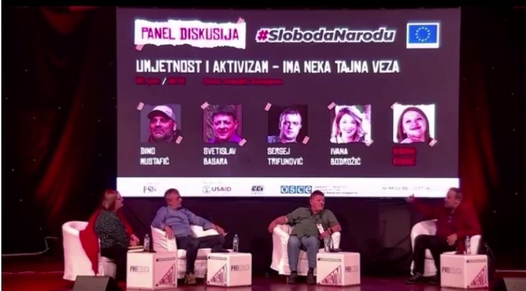 Sergej Trifunović: Ja mogu samo da kažem da glumac koji živi u ovako malom narodu kao što je naš, kada kažem naš mislim na prostore svih ovih "socijalističke federativne republike regija" prosto nema taj luksuz da ćuti na sve što se dešava, mislim da glumac, konkretno glumac u mom slučaju koji je samo glumac, on onda sebe svodi na nivo zabavljača, on je zabavljač i ništa više.