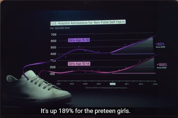Prema predstavljenim podacima samopovređivanje se povećalo za 189% kod djevojčica od 10 do 14 godina starosti od 2008. godine.