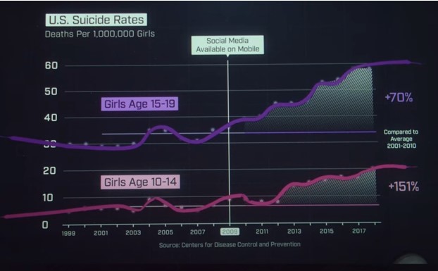 Stopa samoubistava djevojčica starosti između 10 i 14 godina se povećala za 151% od 2009. godine, iste godine kada su društvene mreže postale dostupne na mobilnim uređajima.