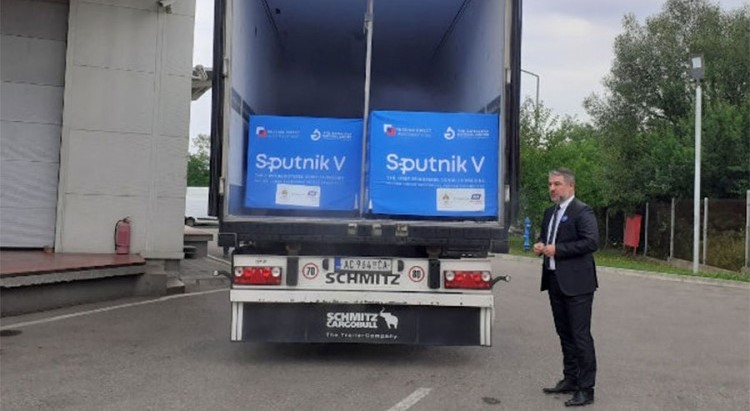 Pošiljku, koja je stigla u skladište firme "Krajina grupa", dočekao je ministar zdravlja i socijalne zaštite Republike Srpske Alen Šeranić.