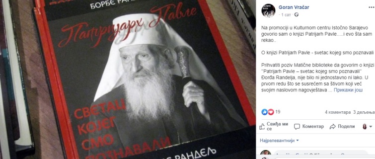 Vračar je ovom prilikom istakao da ova knjiga nije literarno remek-djelo, niti priča o Kosovu ali i da nije ni knjiga o patrijarhu "iako o patrijarhu jeste". Pročitajte šta je sve još srpski književnik rekao ovom prilikom: