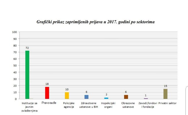 Prema podacima Transparency Internationala, tokom prvih šest mjeseci ove godine trećina prijavljenih slučajeva korupcije adresirane su na sektor državne uprave, zatim na sektore pravosuđa i obrazovanja. Navodi se i da je primjetan trend povećanja prijava koje podnose zviždači koji su inicirali 11% predmeta.