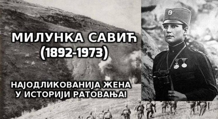 Milunka Savić je najodlikovanija žena vojnik svih vremena. Borila se u Balkanskim i Prvom svetskom ratu. Tokom službe bila je ranjena devet puta, ali to je nije usporilo. Kada je njen brat 1912. godine dobio poziv da ratuje za Srbiju, ona je otišla umesto njega pod imenom Milun Savić.