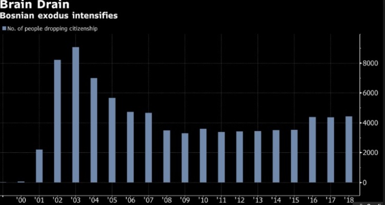 Bosna i Hercegovina, čija se populacija smanjila za četvrtinu za manje od tri decenije, koristi egzodus svojih građana kako bi povećala budžet.