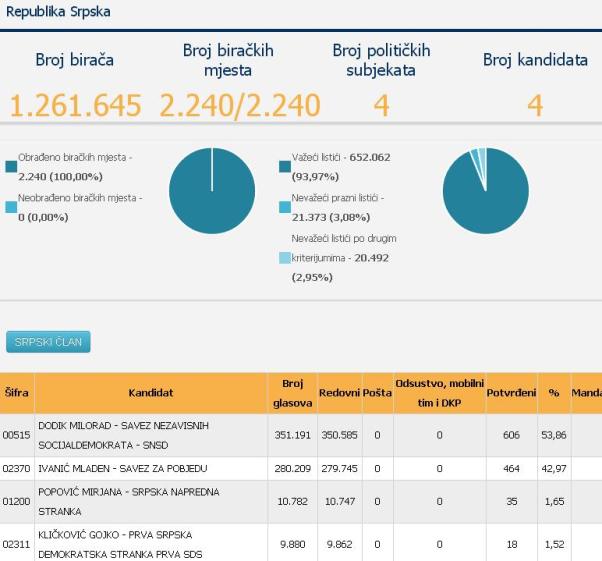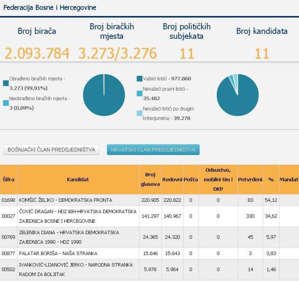 U nastavku pogledajte kako izgledaju rezultati izbora za Predsjedništvo.