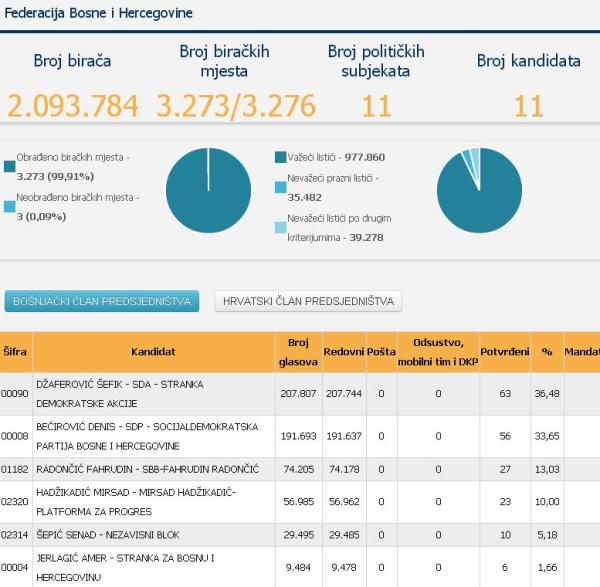 Već je poznato da su u trci za mjesta u ovoj instituciji pobjedili Šefik Džaferović, Željko Komšić i Milorad Dodik.