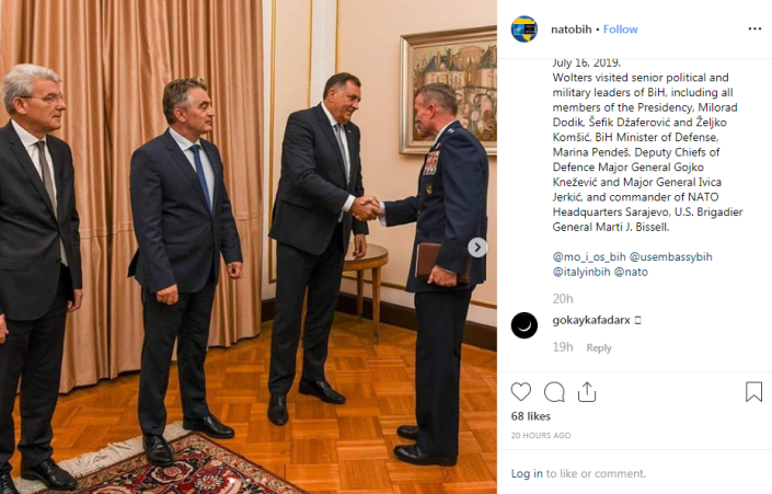 Tom prilikom članovi Predsjedništva BiH su iskazali dobrodošlicu novoimenovanom komandantu Savezničkih snaga za Evropu, te su ga informisali o aktuelnoj političkoj situaciji u BiH. Razgovarano je i o saradnji Savezničkih snaga za Evropu s BiH, a u tom kontekstu istaknut je napredak saradnje u oblastima odbrane, oružanih snaga i sigurnosti.