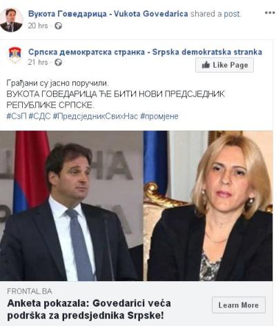 Napominjemo da redakcija Frontala ne može uticati na aktivnosti botova ali je zanimljivo pa i smiješno ponašanje Vukote Govedarice koji Frontal i dalje drži na crnoj listi SDS-a, dok nas sa druge strane SNSD „proziva“ kao portal blizak SDS-u i ostatku stranaka iz Saveza za Promjene.