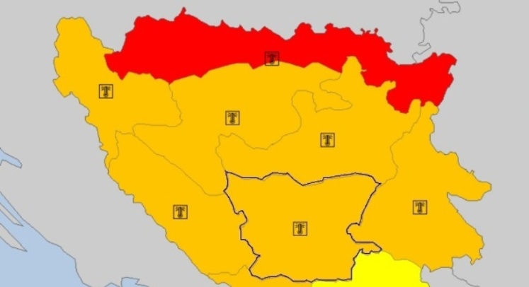 Narandžasto upozorenje izdato je za regije Banjaluka, Bihać, Sarajevo, Tuzla, Višegrad, Trebinje i Mostar zbog ekstremno visoke temperature vazduha.