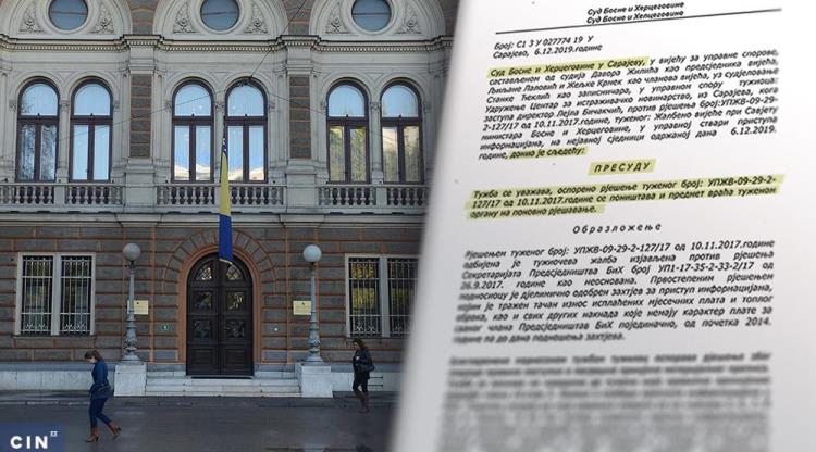 Sud Bosne i Hercegovine smatra da je nezakonito rješenje Žalbenog vijeća pri Savjetu ministara kojim su novinarima Centra za istraživačko novinarstvo (CIN) odbili dati informacije o pojedinačnim platama i naknadama članova Predsjedništva Bosne i Hercegovine (BiH). Rješenje je poništeno i vraćeno Vijeću na ponovno odlučivanje.