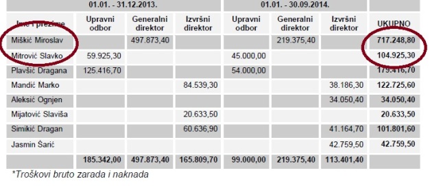 U izvještaju se navodi da je Miškić u 2012. godinu dobi stimulaciju na platu od 117.647 KM, a u 2013. godini 87.826 KM. Uprava Wiener osiguranja nije bila izdašna samo prema Miškiću. Član upravnog odbora Slavko Mitrović od Wiener osiguranja je u 2013. i 2014.godini dobio 104.927 KM.